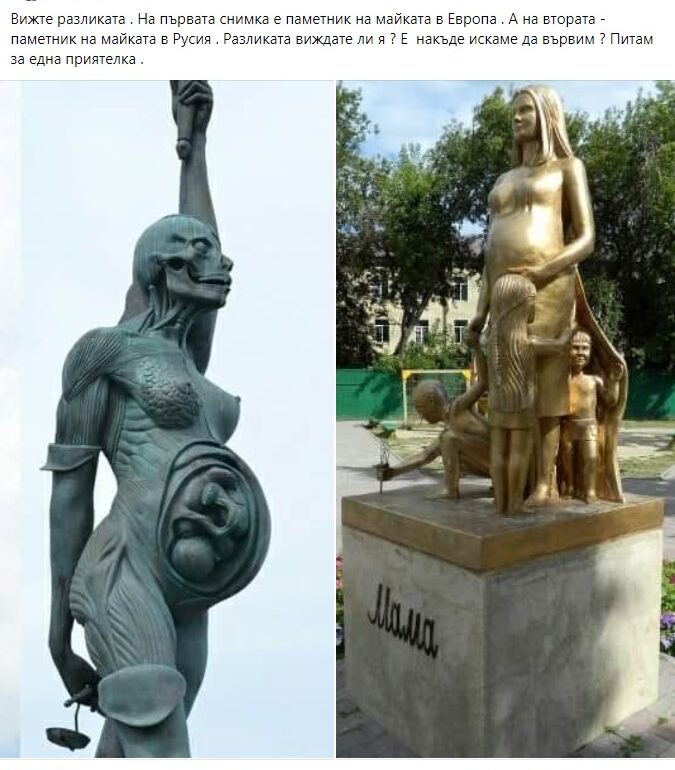 Вижте разликата. На първата снимка е паметник на майката в Европа, а на втората – паметник на майката в Русия.