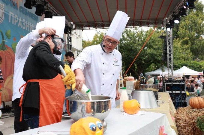 На минус 196 градуса е приготвен днешният десерт с тиква, снимка: Община Севлиево