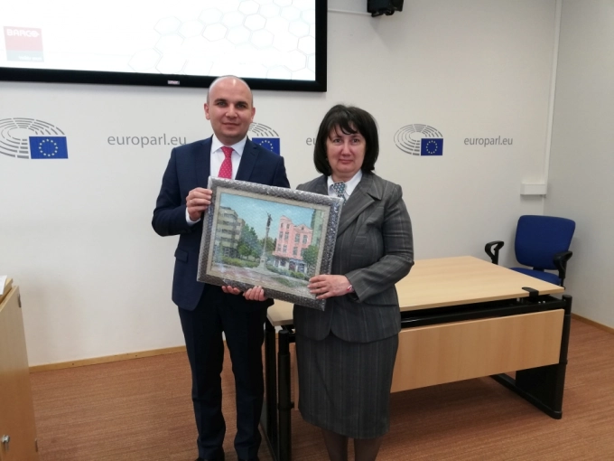 Картина на Васко Василев подариха учениците и тяхната учителка на евродепутата Илхан Кючюк