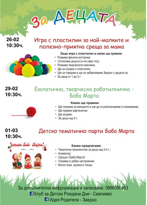 Този месец например ще имаме няколко събития – на 26 февруари родители и деца ще играем заедно с пластилин и ще си говорим.