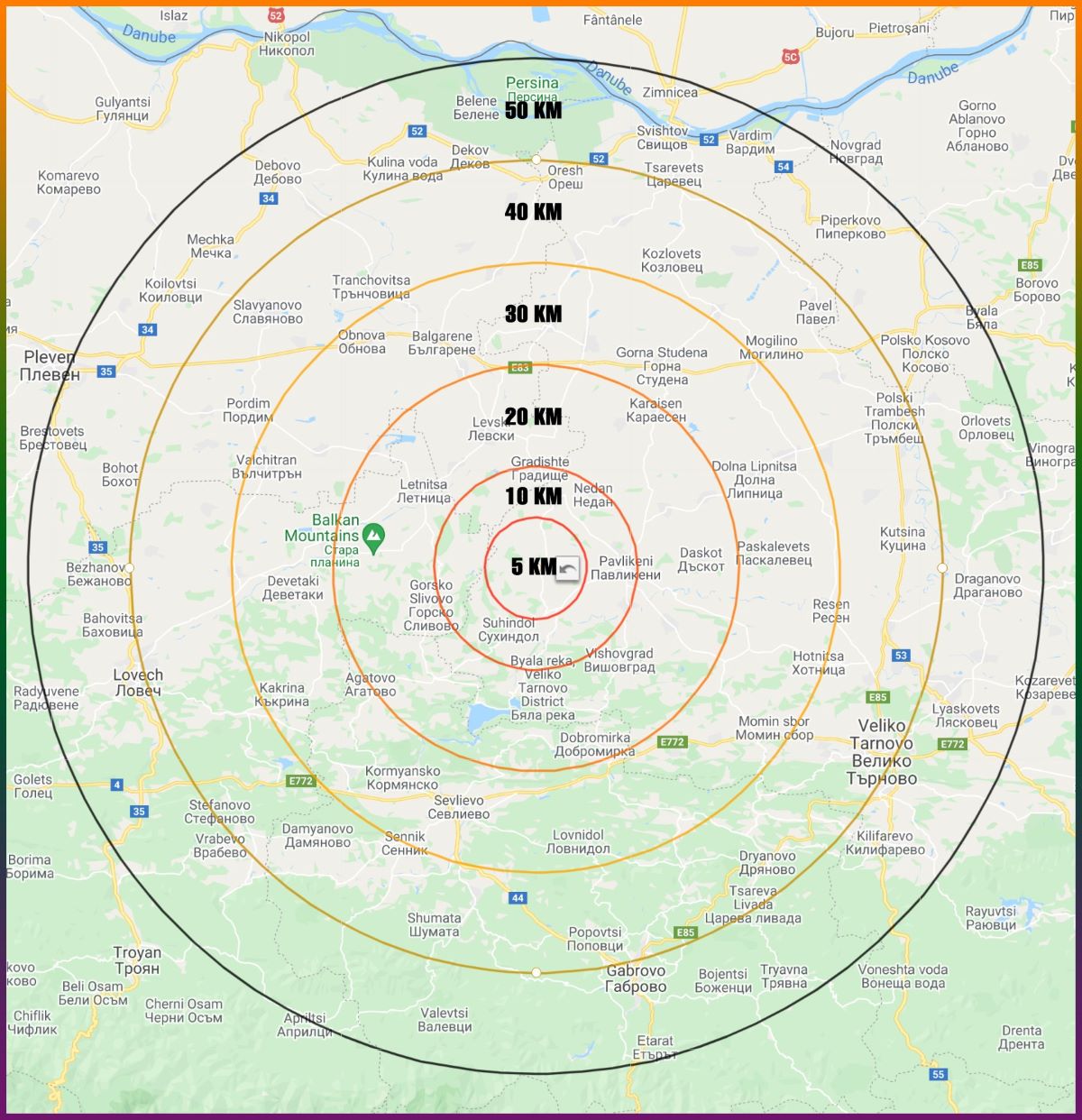 Междувременно от "За Павликени" предоставиха карта на негавното въздействие на бъдещия завод върху региона. От нея се вижда ,че засегнати от бъдещия инсинератор за горене на отпадъци ще бъдат живеещите в доста широк радиус.
