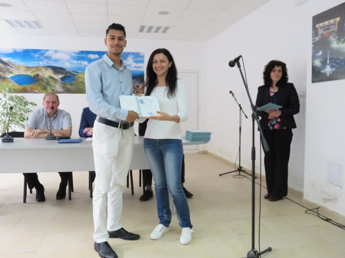 Редом с дипломите за средно образование завършилите получиха и свидетелствата си за професионална квалификация. Поздравителен адрес от името на областния управител прочете заместникът й Росен Цветков, за когото присъствието на днешната церемония по дипломирането имаше и емоционална стойност. Още преди да поеме работата в областната администрация той каза, че учениците ще му липсват и изрази надежди, че и той ще липсва на тях. А посрещането на г-н Цветков днес категорично показа, че симпатиите между ученици и преподавател са били взаимни.