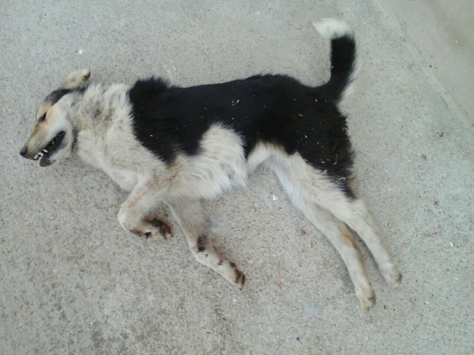Кучето било в безпомощно състояние. На едната му лапа имало голяма рана, по всяка вероятност от примка. Челюстта му била счупена. При докосване на тялото му надавало неистови звуци, явно от силната болка.