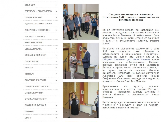 Вероятно би могло да се приеме за странно, че в Община Севлиево, която е организатор на националния конкурс за поезия на името на Мара Белчева, не знаят, че тя е родена на 8 септември, а не на 12-ти. Всъщност е срамно. И непростимо. Защото става дума за Общината, чийто кмет връчва национални награди за поезия. Иначе не са пропуснали да му публикуват снимки с всички наградени.