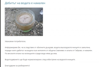 Заради авария на 22 юни в Севлиево няма да има вода