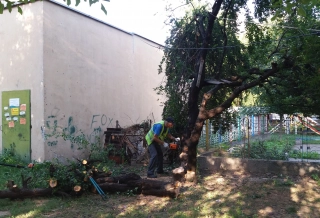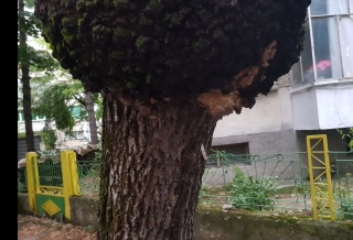 Клони паднаха върху кола, съседи чакат да падне и дървото