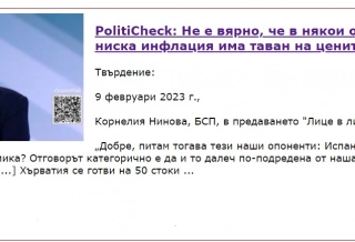 PolitiCheck: Не е вярно, че в някои от държавите с най-ниска инфлация има таван на ценитеОбщество / 02.03.2023 г.
