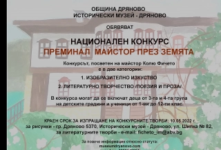 Община Дряново и Историческият музей в града обявяват Национален детски конкурс "Преминал майстор през земята - 2022"Култура / 23.03.2022 г.