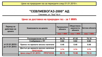 С 33 лв. за MWh (без ДДС) е по-скъп газа през януари 2023 г. за клиентите на "Севлиевогаз"Общество / 04.01.2023 г.